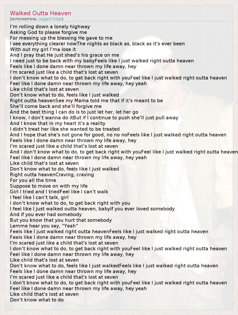 Don't know what to do, feels like I just walkedFeels like I just walked right outta heaven