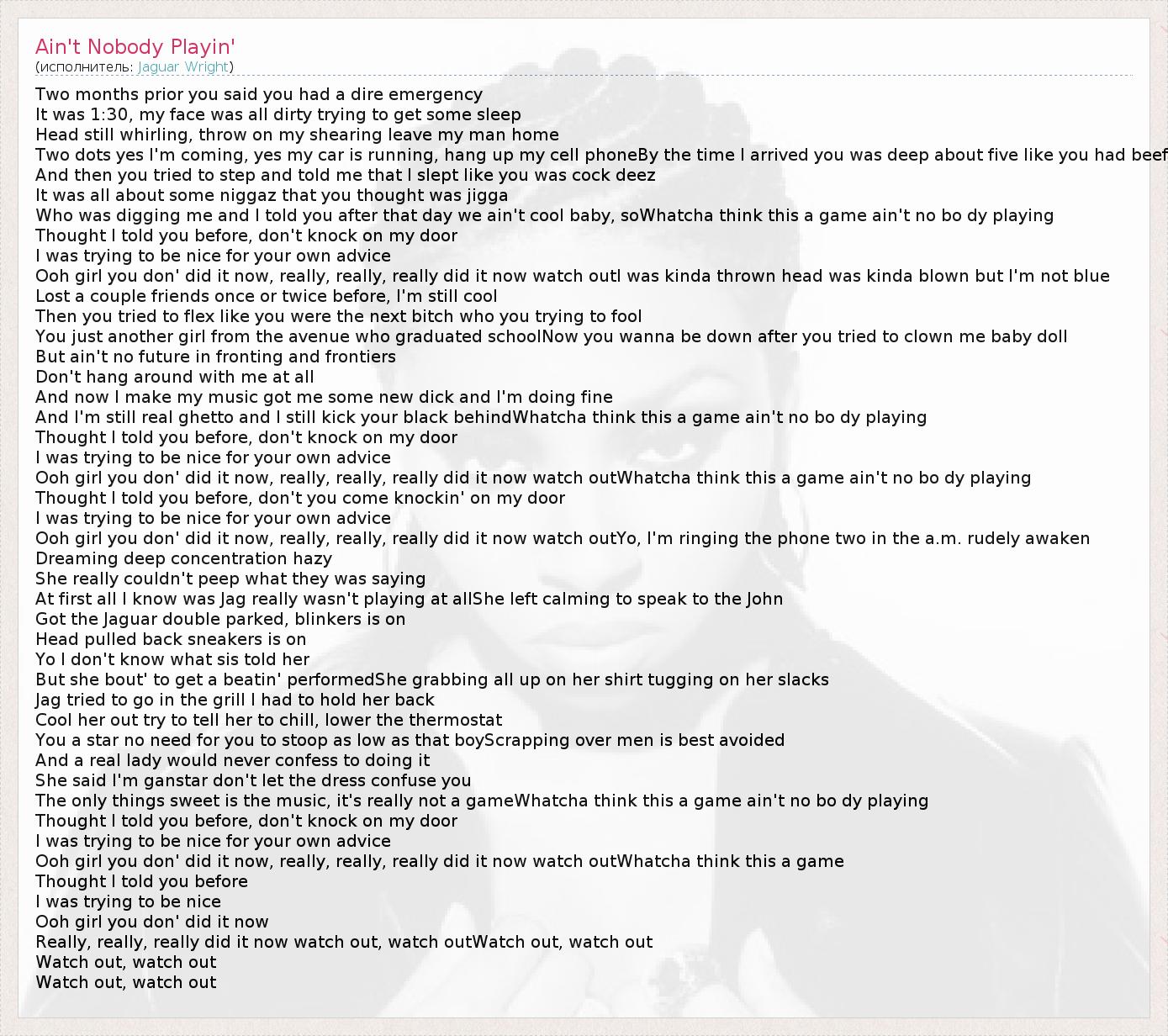 А как ты думаешь, о чем песня "Ain't Nobody Playin'" ?