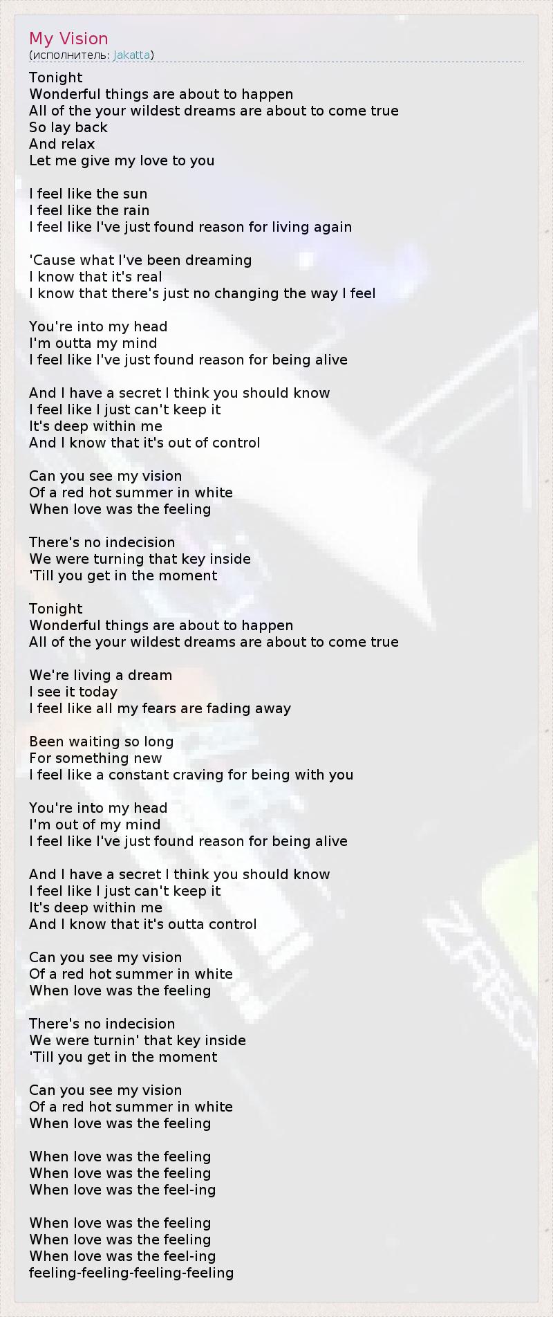А как ты думаешь, о чем песня "My Vision" ?