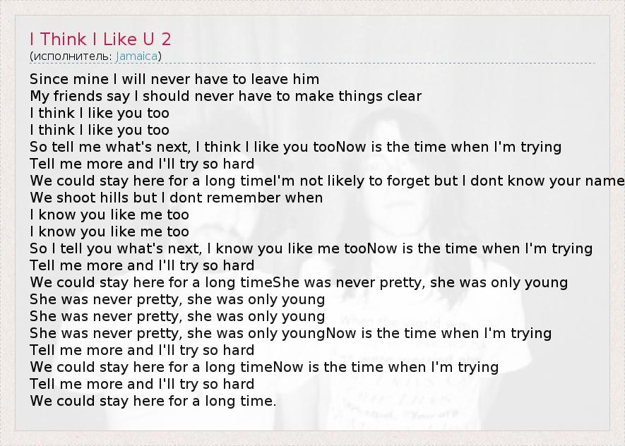 А как ты думаешь, о чем песня "I Think I Like U 2" ?