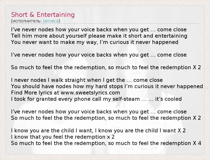А как ты думаешь, о чем песня "Short & Entertaining" ?