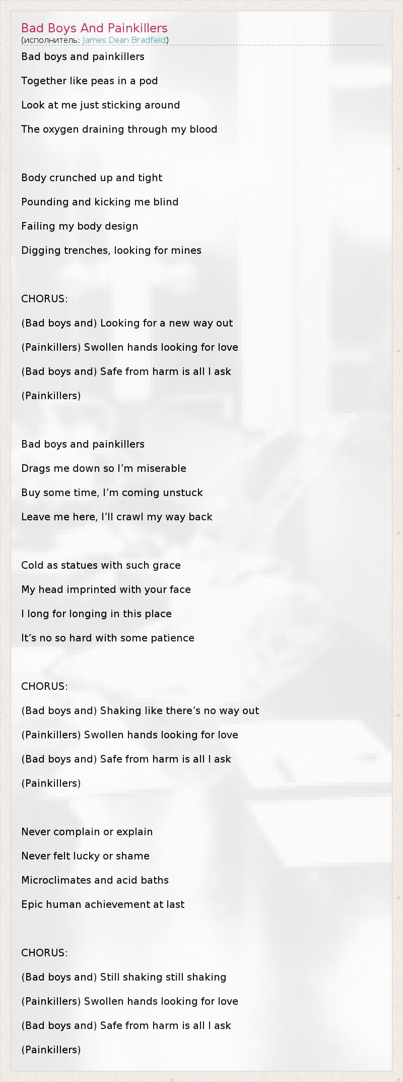 А как ты думаешь, о чем песня "Bad Boys And Painkillers" ?