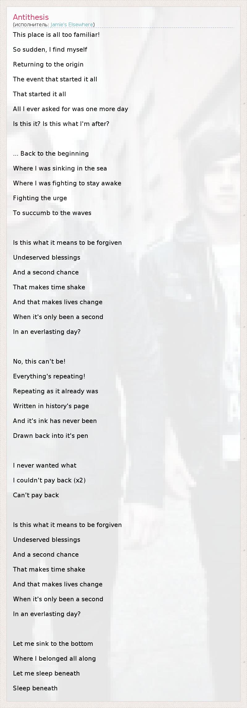 Это интересно:Jamie's Elsewhere — американская пост-хардкор группа основанная в городе Сакраменто, штат Калифорния, в 2005 году. Группа подписана на лейбл Victory Records и на данный момент имеет три полноценных студийных альбома, первый из которых "Guidebook For Sinners Turned Saints" вышел в 2008 году, спустя два года последовала пластинка "They... продолжение
