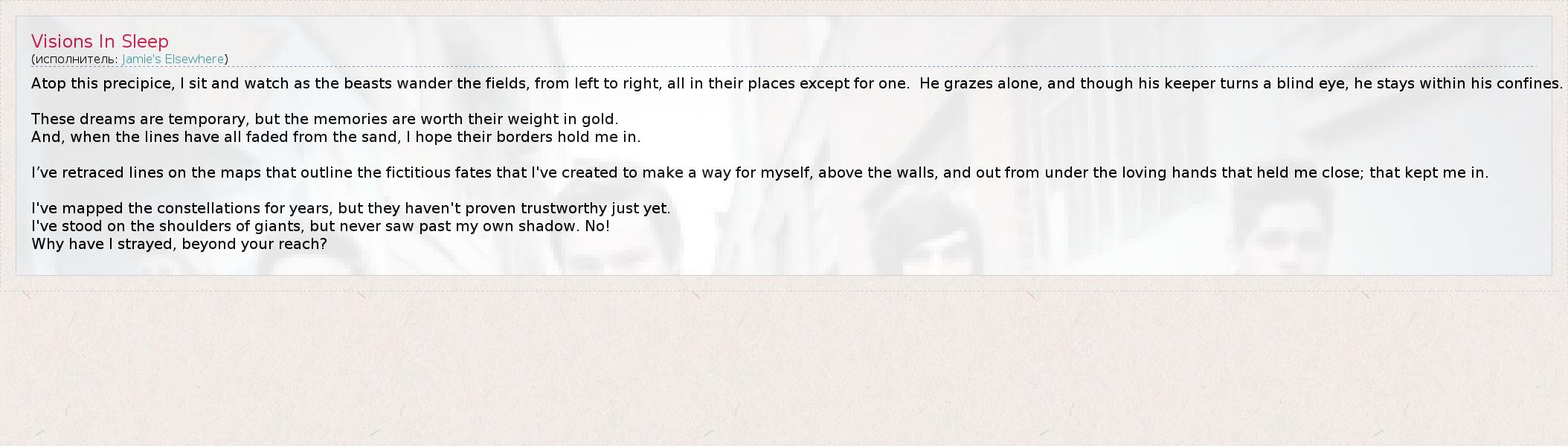 А как ты думаешь, о чем песня "Visions In Sleep" ?