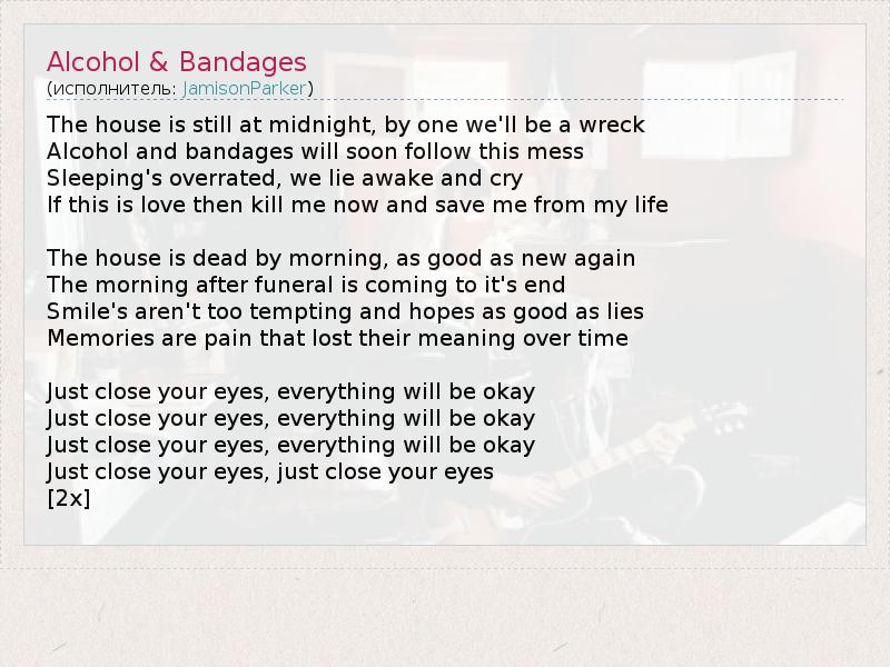 А как ты думаешь, о чем песня "Alcohol & Bandages" ?