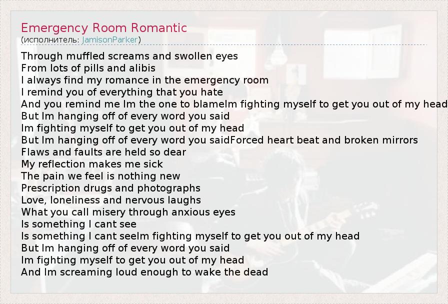 А как ты думаешь, о чем песня "Emergency Room Romantic" ?