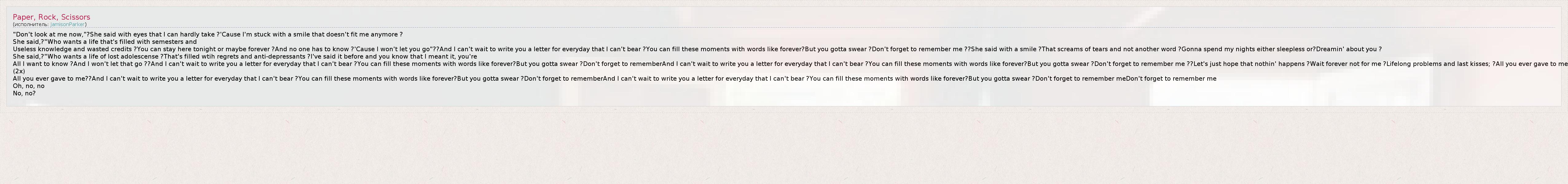 А как ты думаешь, о чем песня "Paper, Rock, Scissors" ?