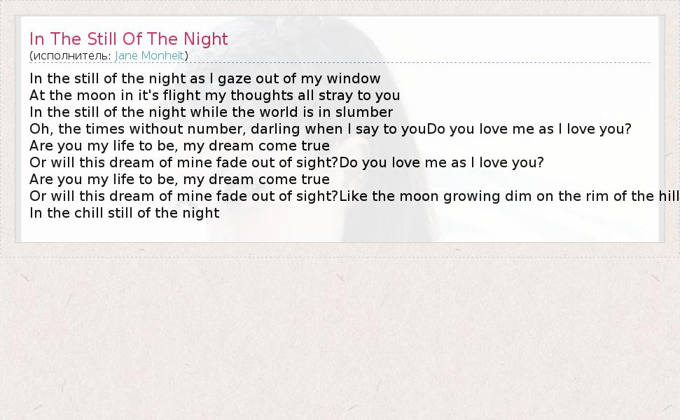 А как ты думаешь, о чем песня "In The Still Of The Night" ?