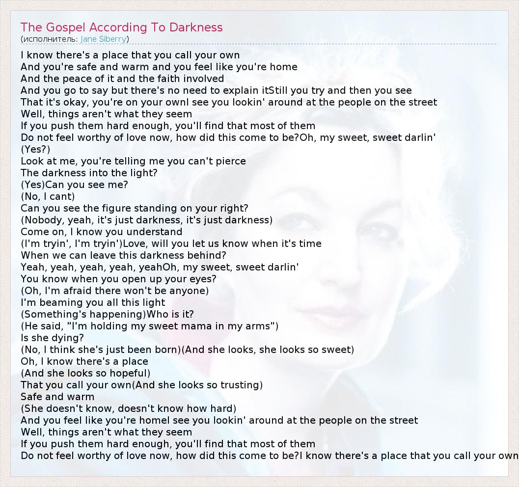А как ты думаешь, о чем песня "The Gospel According To Darkness" ?