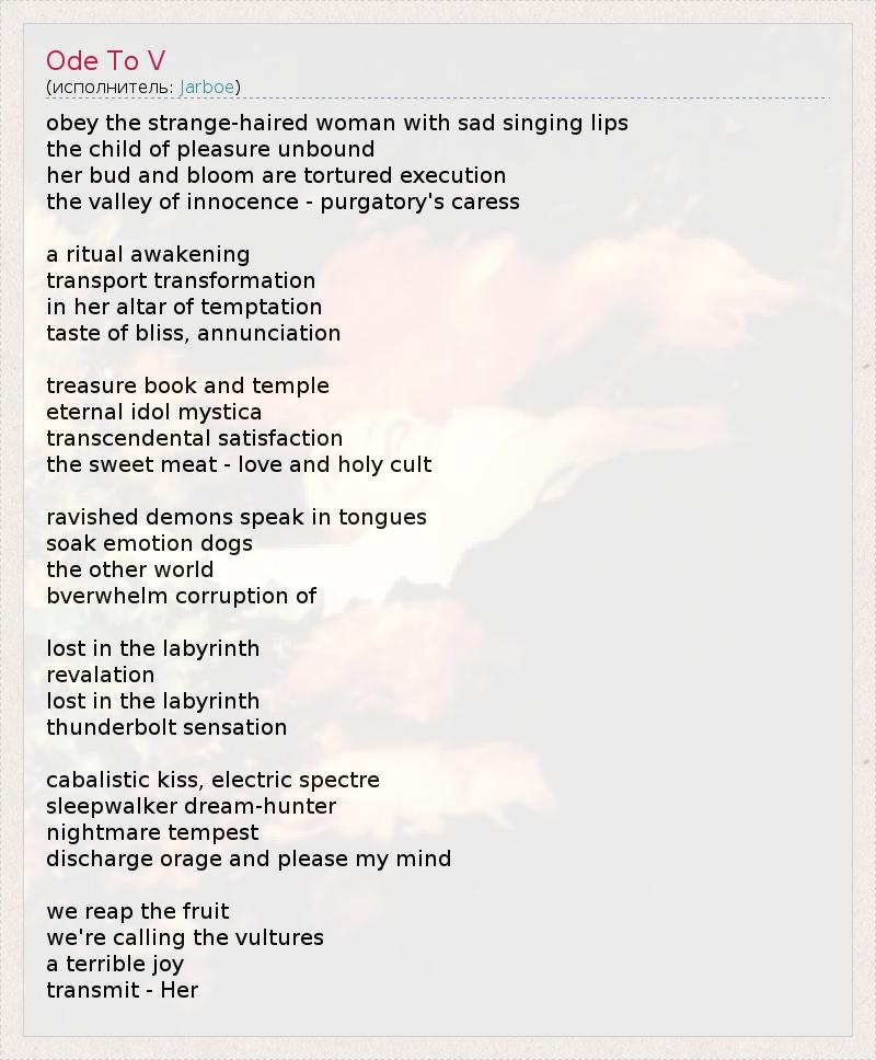 А как ты думаешь, о чем песня "Ode To V" ?