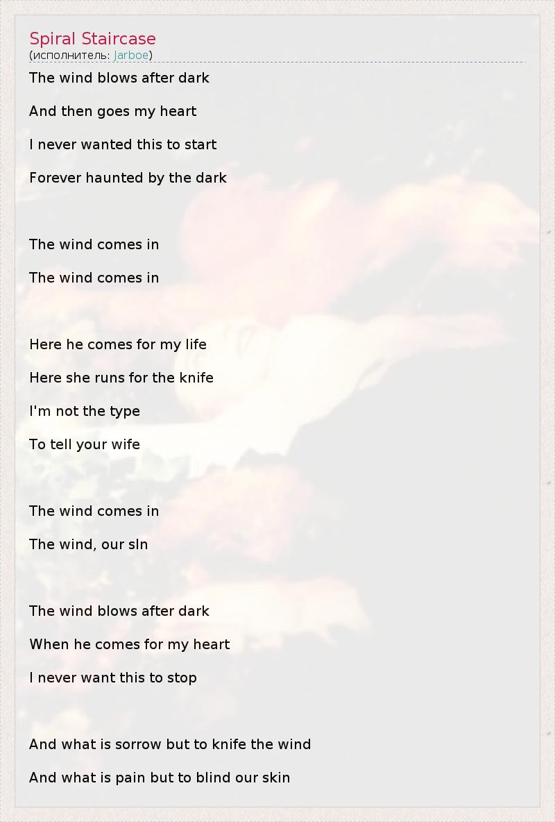 А как ты думаешь, о чем песня "Spiral Staircase" ?