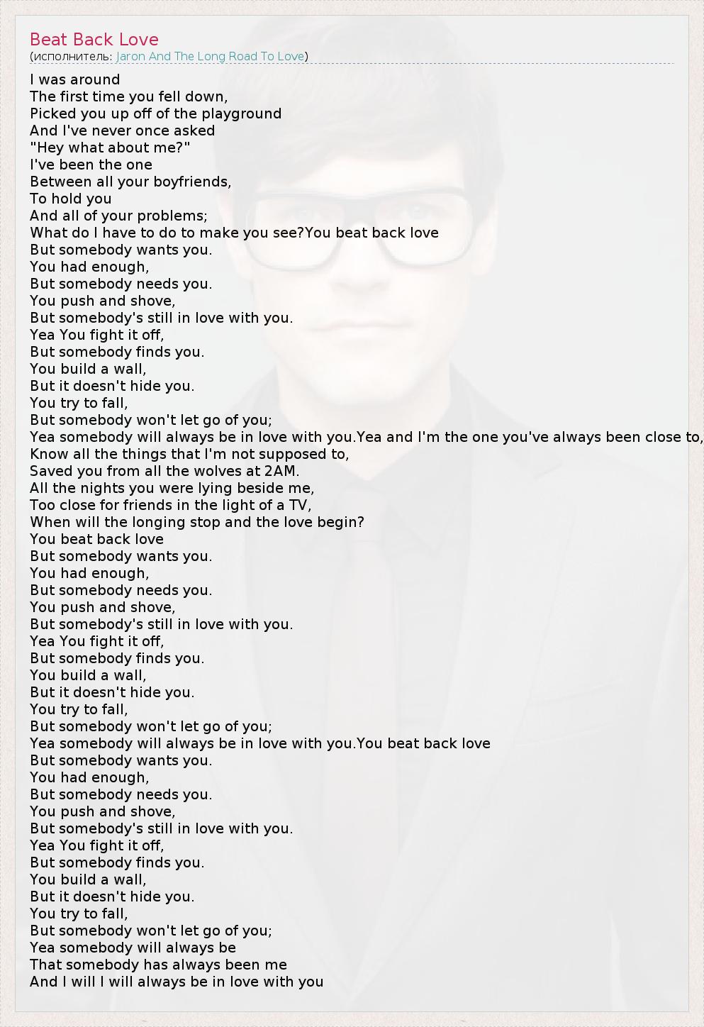 А как ты думаешь, о чем песня "Beat Back Love" ?