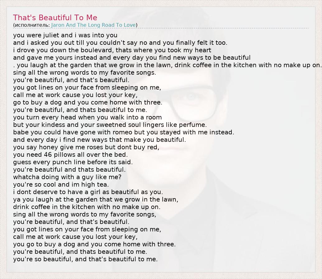 А как ты думаешь, о чем песня "That's Beautiful To Me" ?