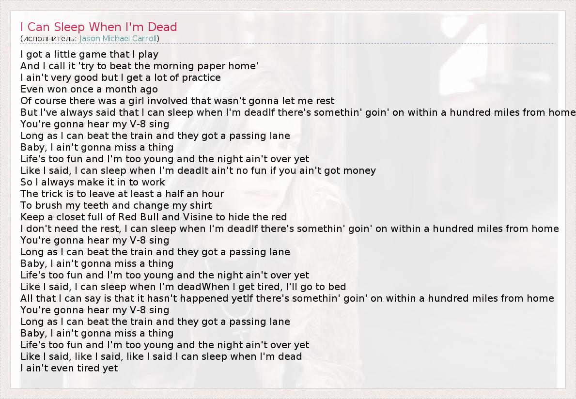 А как ты думаешь, о чем песня "I Can Sleep When I'm Dead" ?