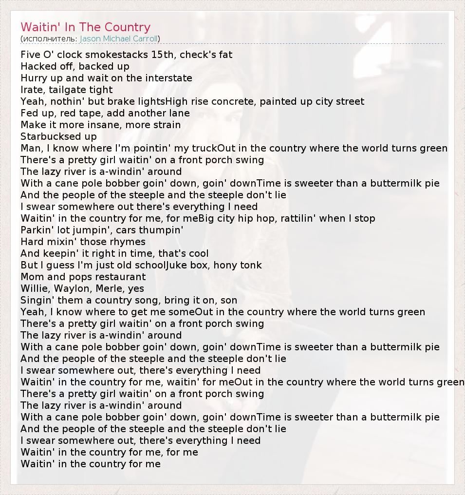 А как ты думаешь, о чем песня "Waitin' In The Country" ?