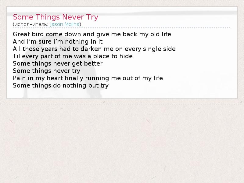 А как ты думаешь, о чем песня "Some Things Never Try" ?