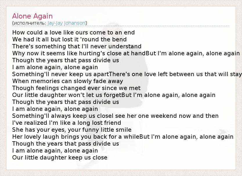 Why now it seems like hurting's close at handBut I'm alone again, alone again