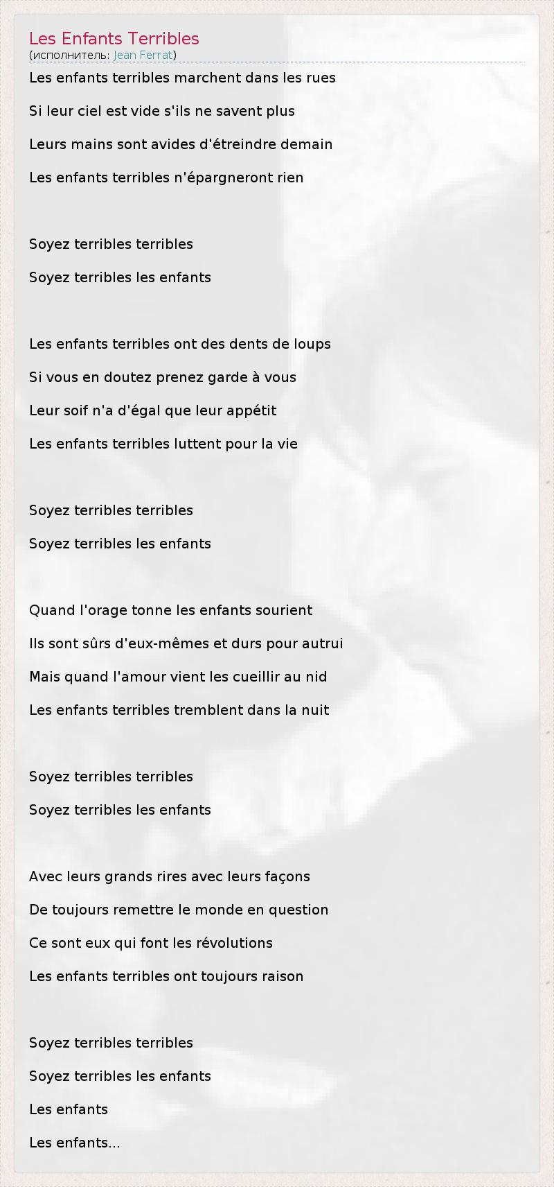 А как ты думаешь, о чем песня "Les Enfants Terribles" ?