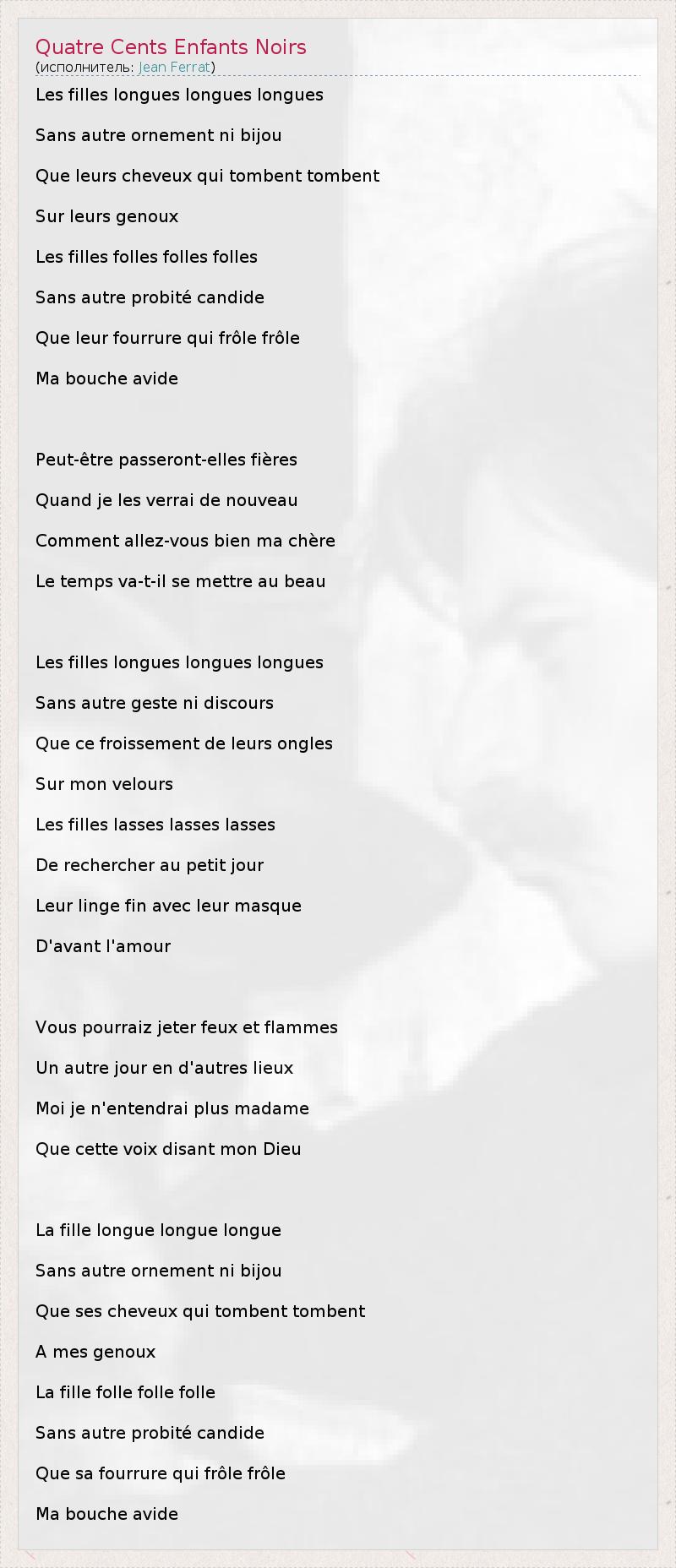 А как ты думаешь, о чем песня "Quatre Cents Enfants Noirs" ?