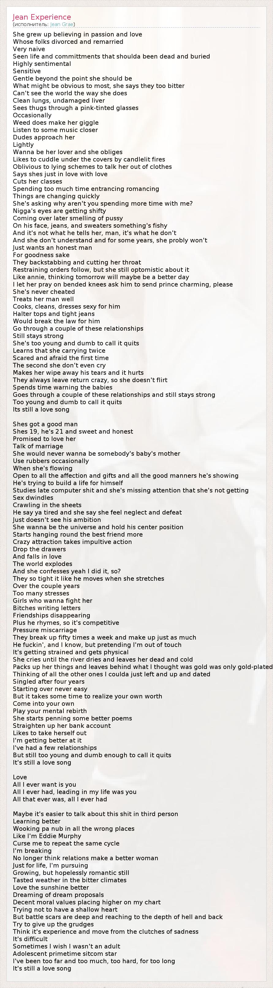 А как ты думаешь, о чем песня "Jean Experience" ?