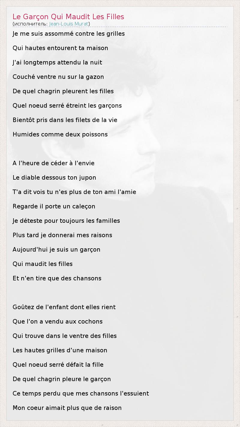 А как ты думаешь, о чем песня "Le Garçon Qui Maudit Les Filles" ?