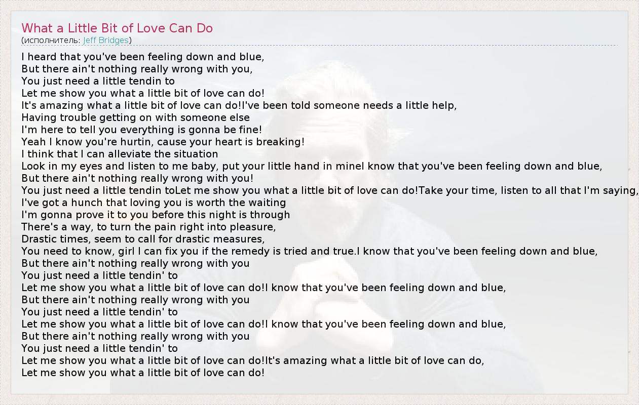 ГлавнаяИсполнителиJeff BridgesWhat a Little Bit of Love Can Do