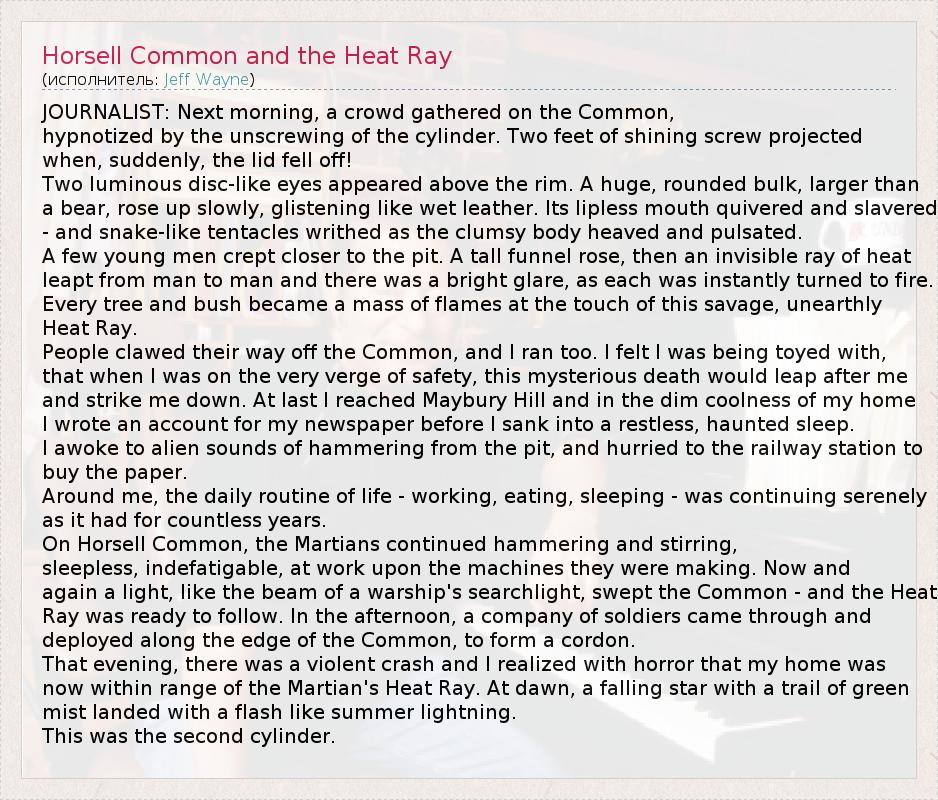 А как ты думаешь, о чем песня "Horsell Common and the Heat Ray" ?
