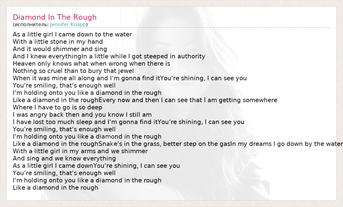 А как ты думаешь, о чем песня "Diamond In The Rough" ?