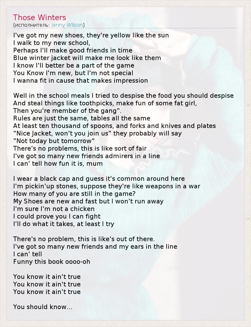 А как ты думаешь, о чем песня "Those Winters" ?