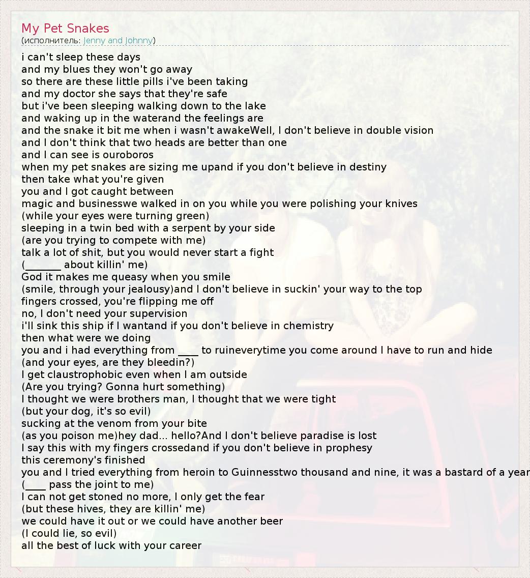А как ты думаешь, о чем песня "My Pet Snakes" ?