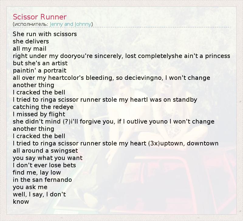 А как ты думаешь, о чем песня "Scissor Runner" ?
