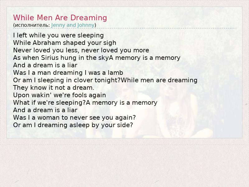 А как ты думаешь, о чем песня "While Men Are Dreaming" ?