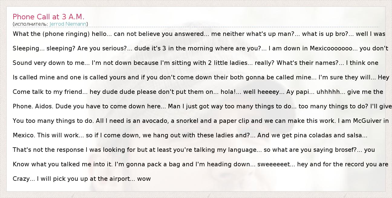 А как ты думаешь, о чем песня "Phone Call at 3 A.M." ?