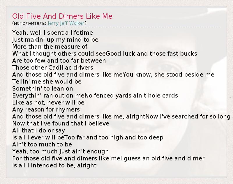 А как ты думаешь, о чем песня "Old Five And Dimers Like Me" ?