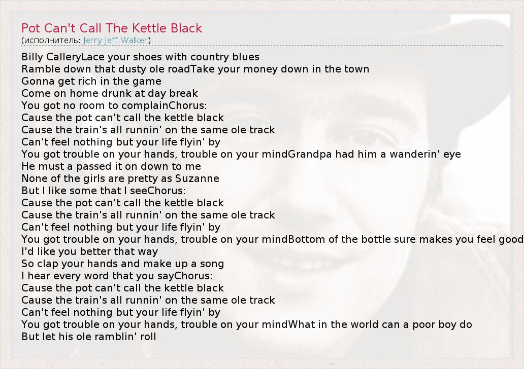 А как ты думаешь, о чем песня "Pot Can't Call The Kettle Black" ?