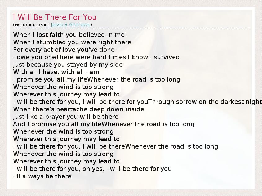 А как ты думаешь, о чем песня "I Will Be There For You" ?
