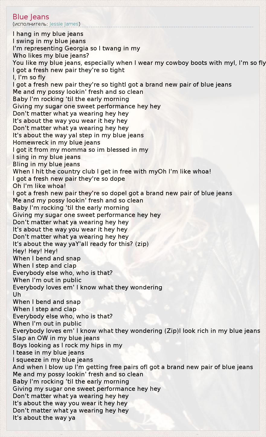 А как ты думаешь, о чем песня "Blue Jeans" ?