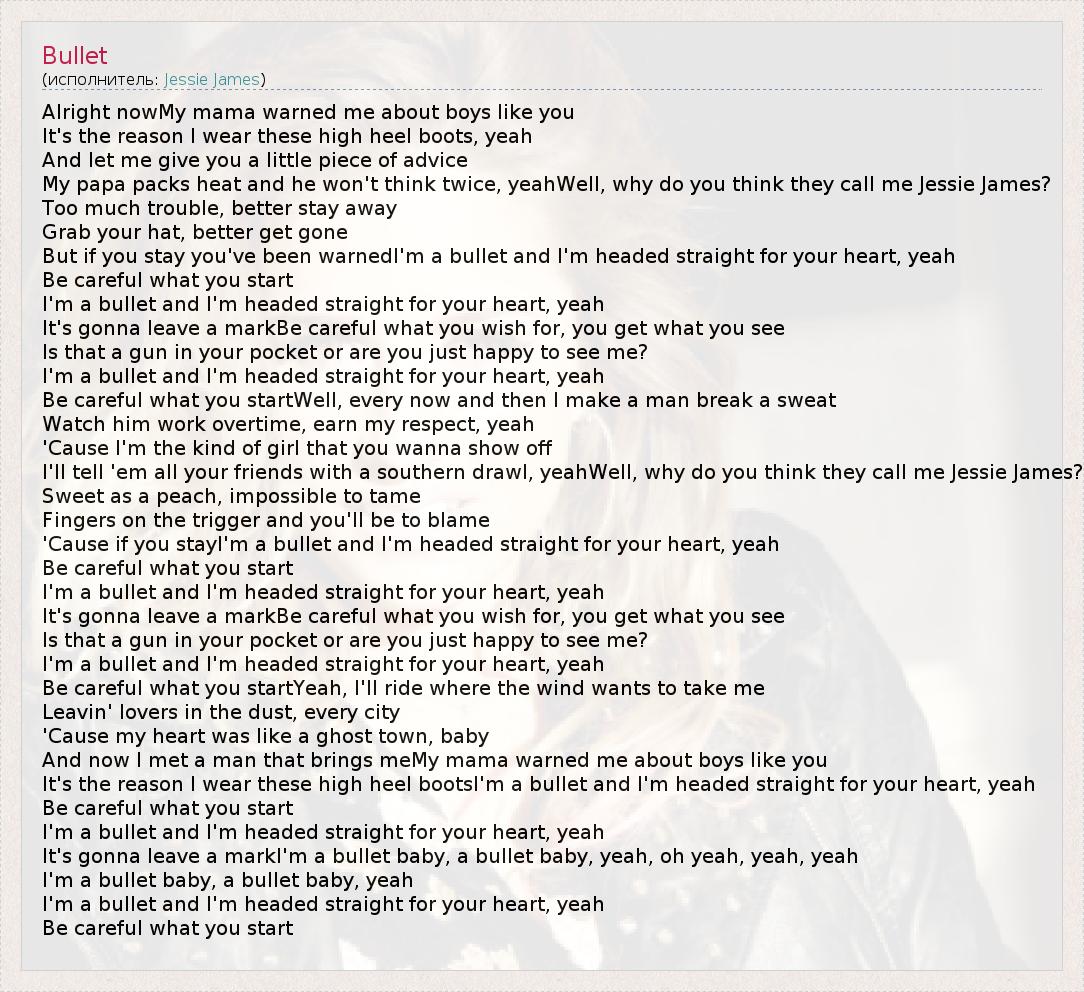 My papa packs heat and he won't think twice, yeahWell, why do you think they call me Jessie James?