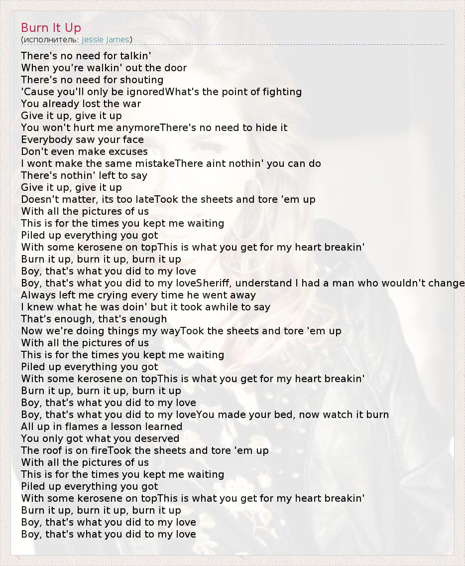 А как ты думаешь, о чем песня "Burn It Up" ?