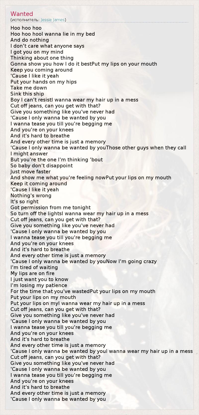 'Cause I only wanna be wanted by youI wanna wear my hair up in a mess