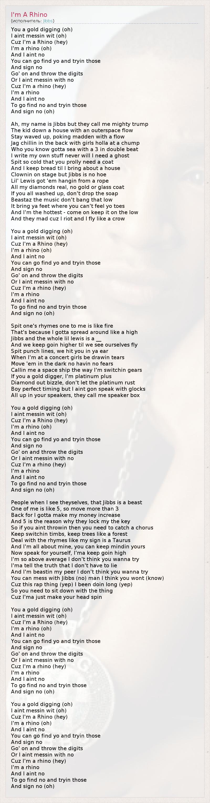 А как ты думаешь, о чем песня "I'm A Rhino" ?