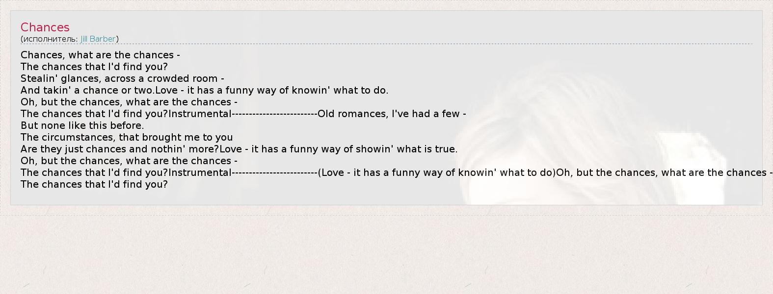 The chances that I'd find you?Instrumental-------------------------(Love - it has a funny way of knowin' what to do)Oh, but the chances, what are the chances -