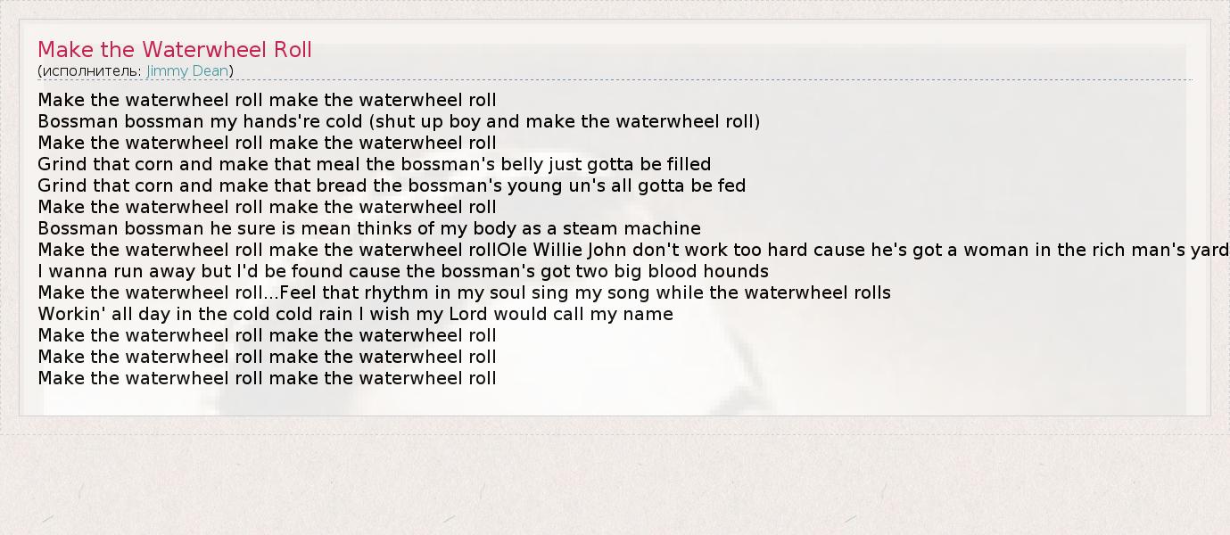 ГлавнаяИсполнителиJimmy DeanMake the Waterwheel Roll