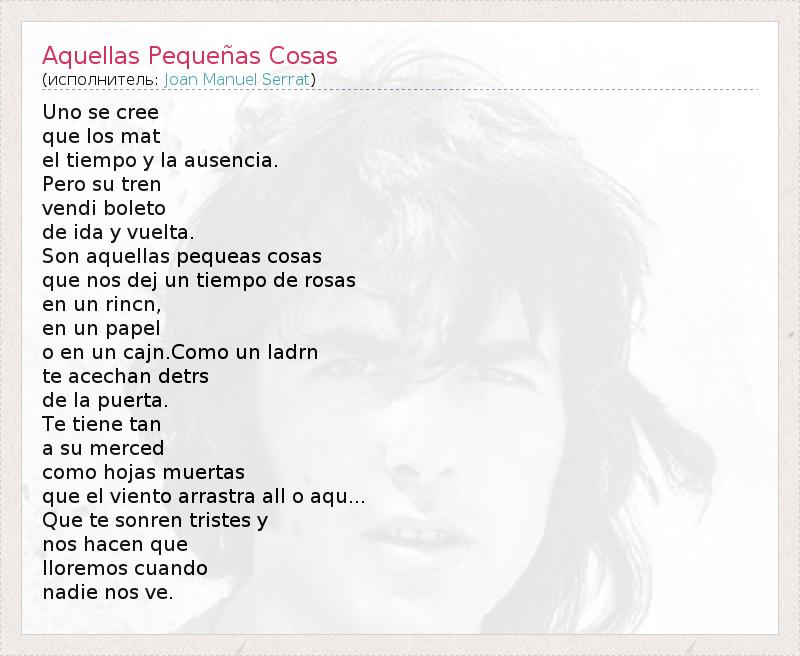 А как ты думаешь, о чем песня "Aquellas Pequeñas Cosas" ?
