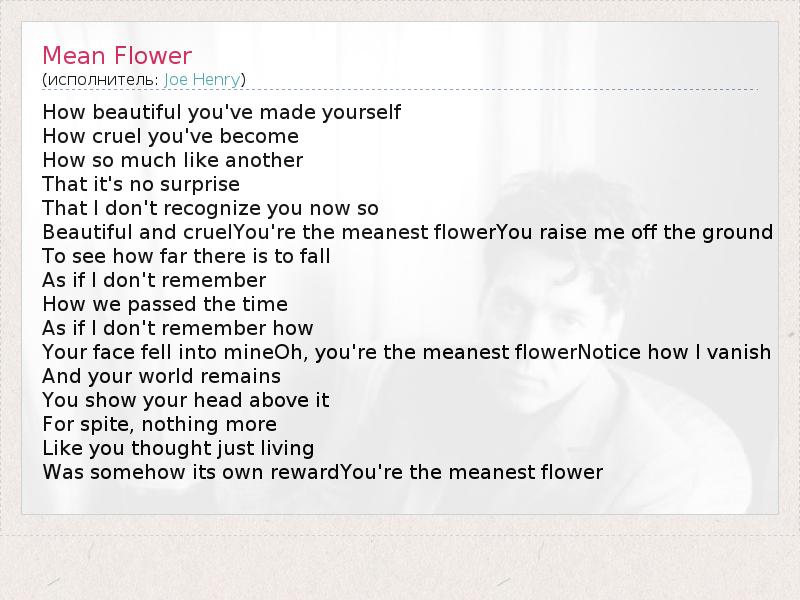 А как ты думаешь, о чем песня "Mean Flower" ?