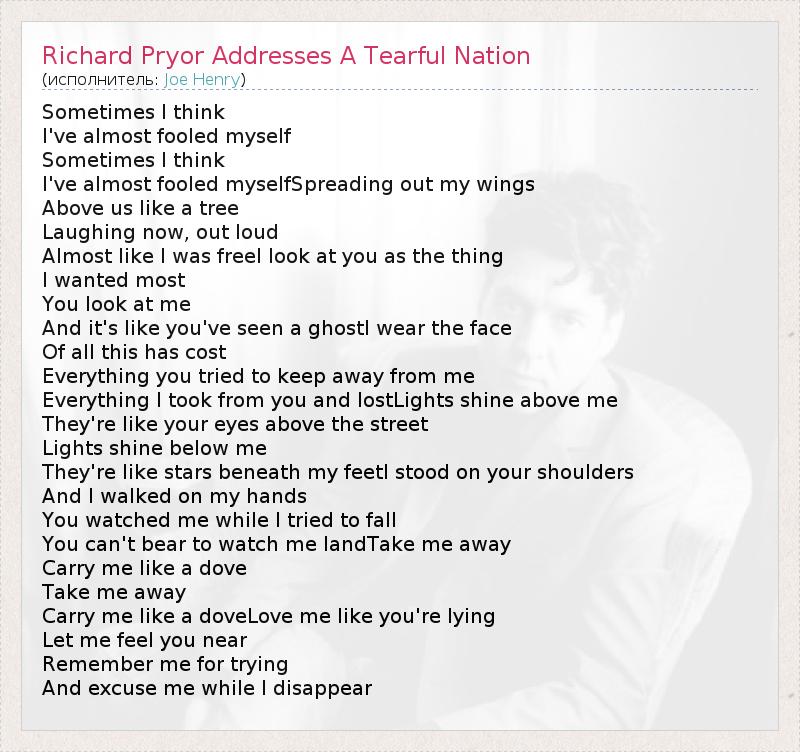 А как ты думаешь, о чем песня "Richard Pryor Addresses A Tearful Nation" ?