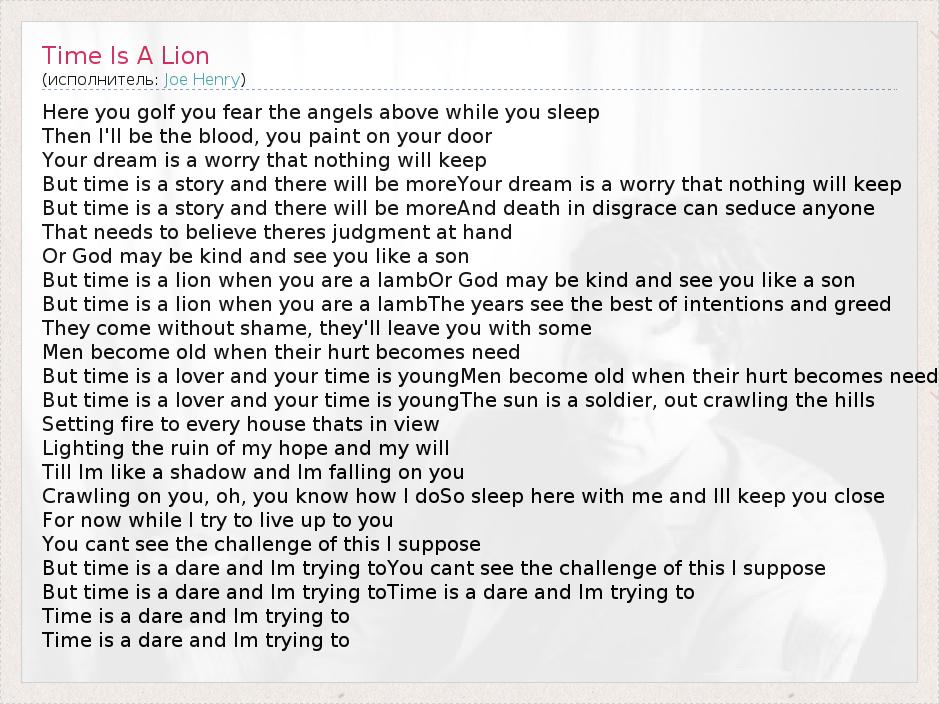 А как ты думаешь, о чем песня "Time Is A Lion" ?