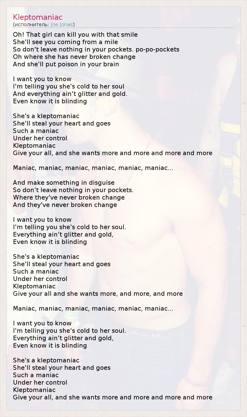А как ты думаешь, о чем песня "Kleptomaniac" ?