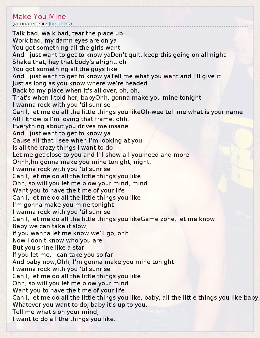 А как ты думаешь, о чем песня "Make You Mine" ?