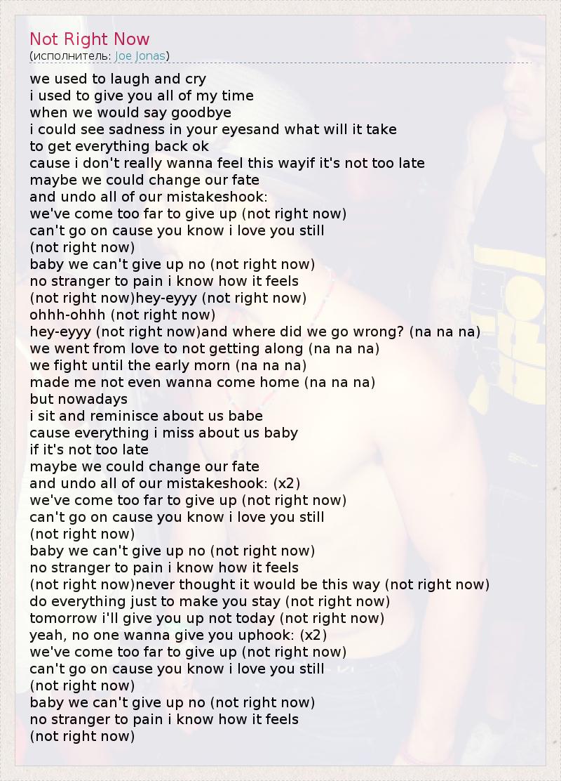 А как ты думаешь, о чем песня "Not Right Now" ?